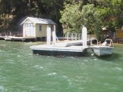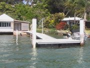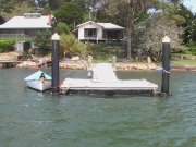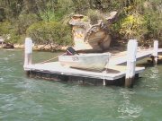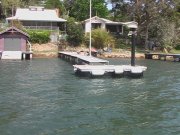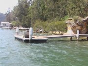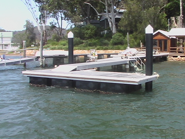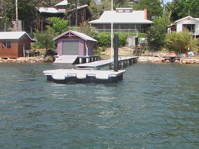 These are pictures of pontoons at Dangar Island Sydney Australia. All with Marine Dock Systems floats under them. Some recent, some built in 1980 and still going strong. There is a mix of timber framed pontoons decked with hardwood. Aluminium framed pontoons decked with hardwood timber. A lot of these photos also have our aluminium ramps / gangways on them. Some of these pontoons were built by someone else on our Marine Dock Systems floatation modules. Please veiw the photo's to see just what is possible with our universal pontoon system. | |