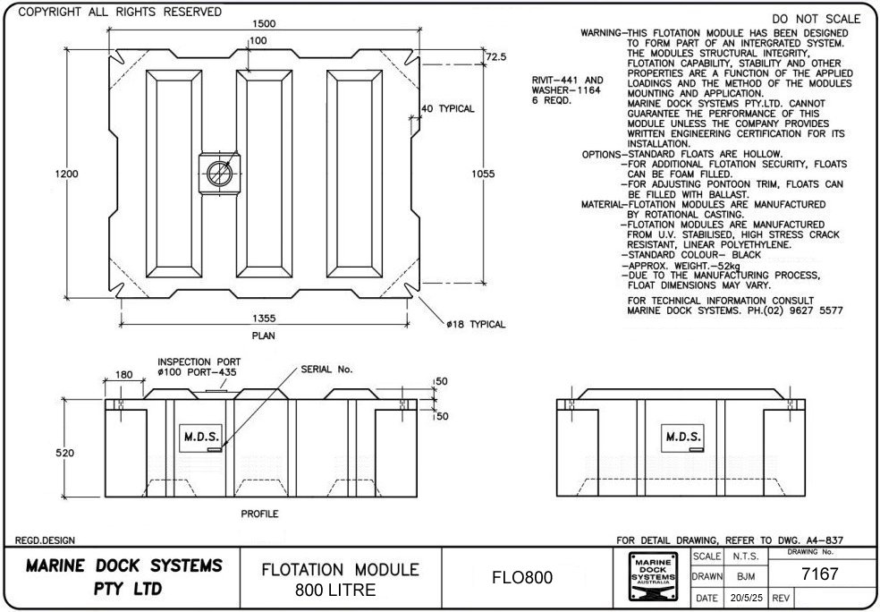 This float has been specifically designed for use under "Sea Grass" pontoons and effluent treatment pontoons. The narrow width and larger depth of the float allows us to build pontoons with a much smaller water plane area in comparison to deck area.