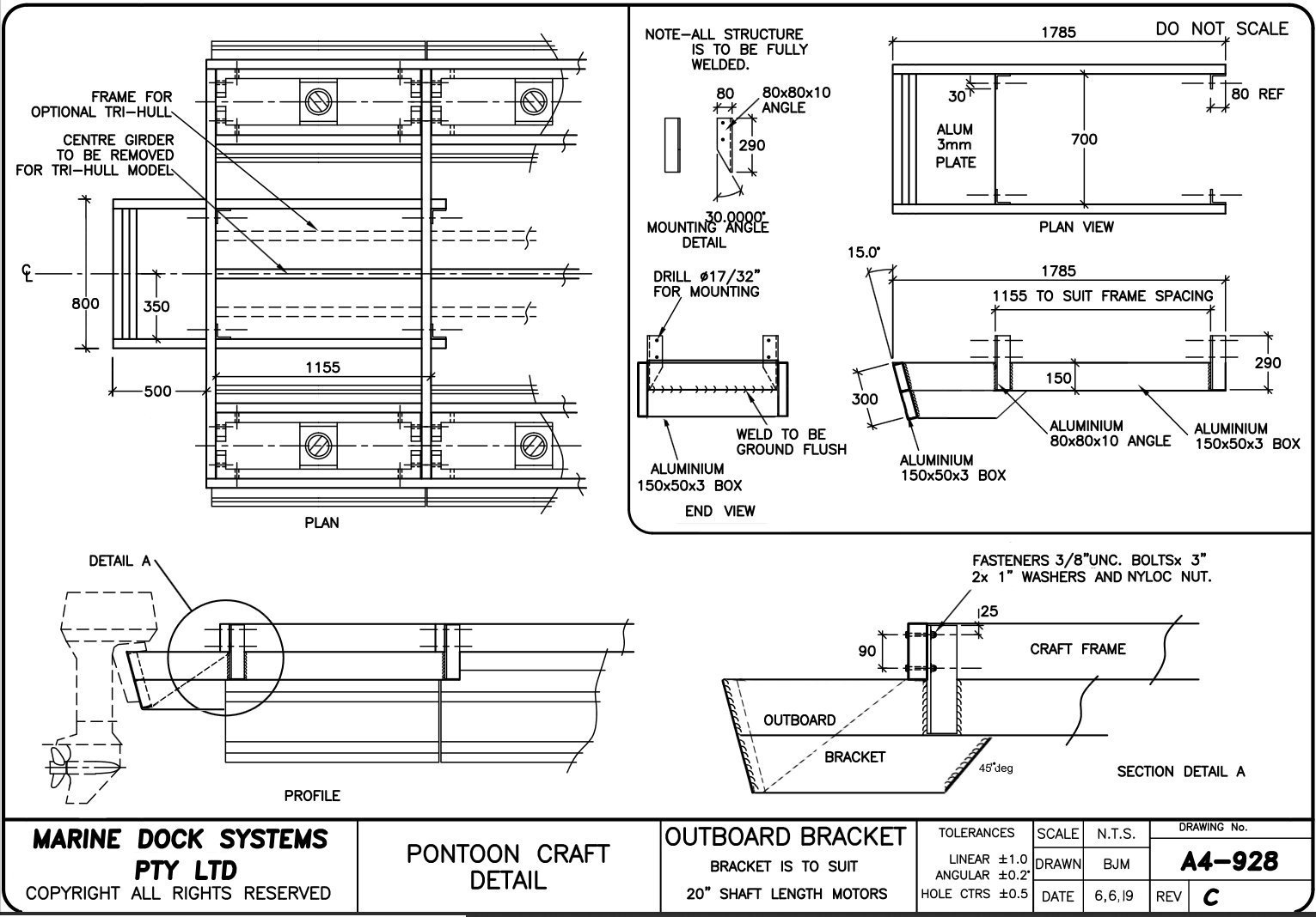 Shown here with handrails gates and outboard motor bracket. POA |  |