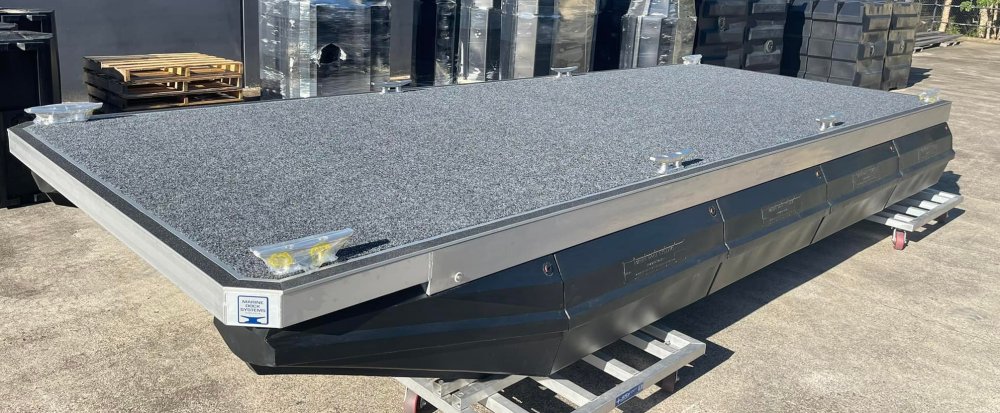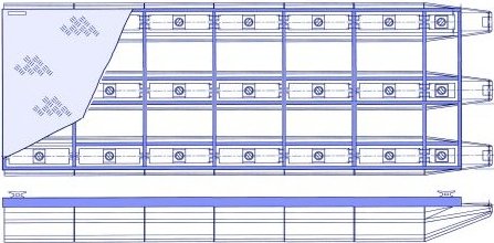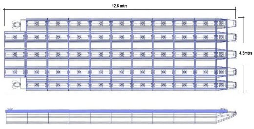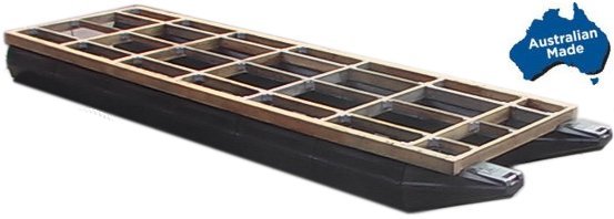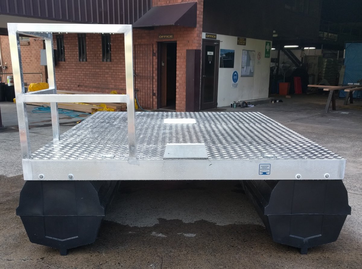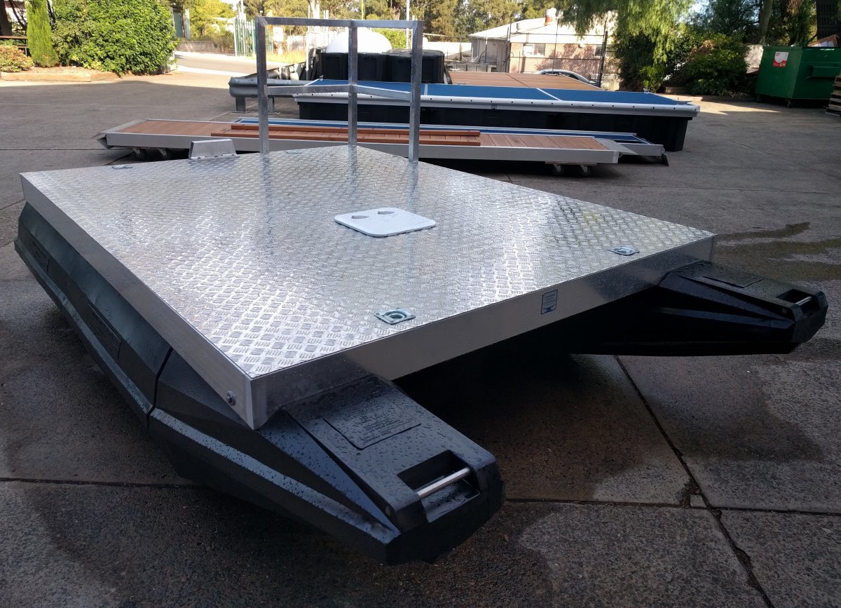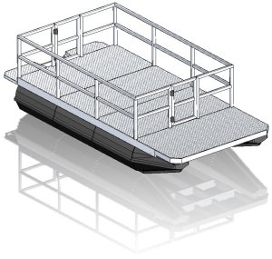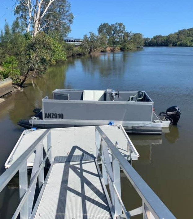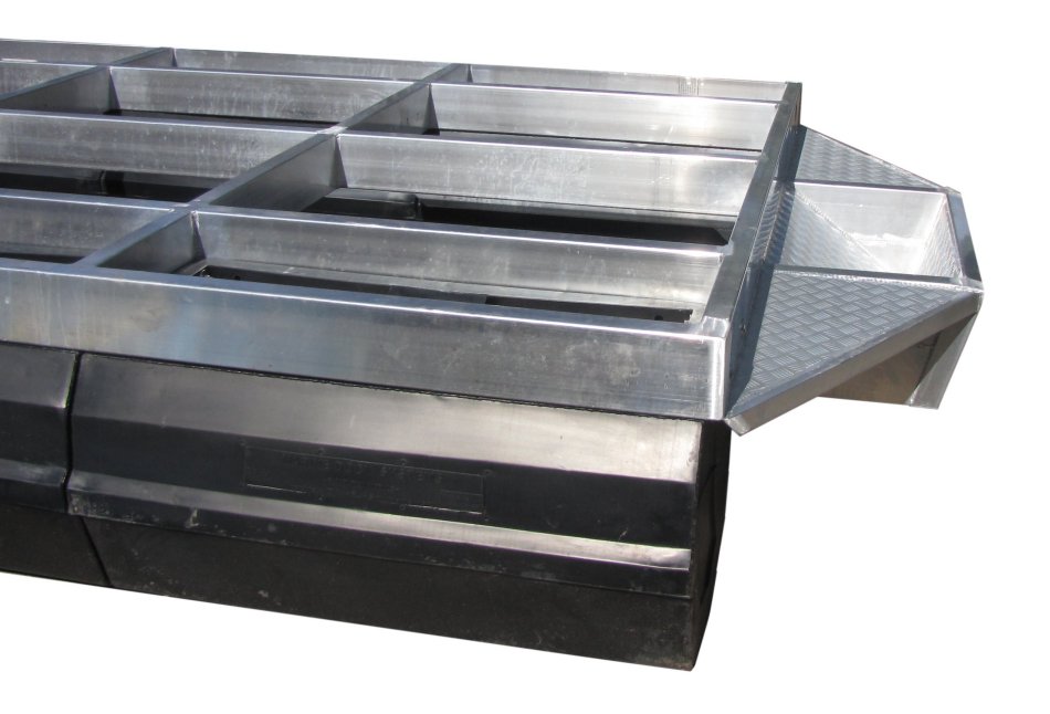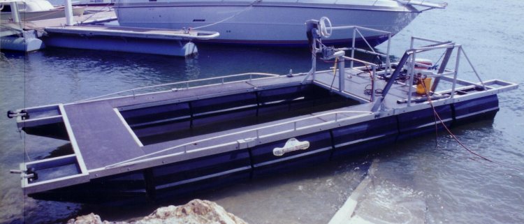 This boat is used as a standard access pontoon when not in use. Supplied with hinge lugs on the side for a six meter ramp to be attached. |