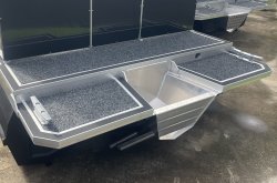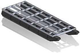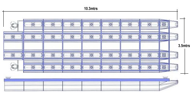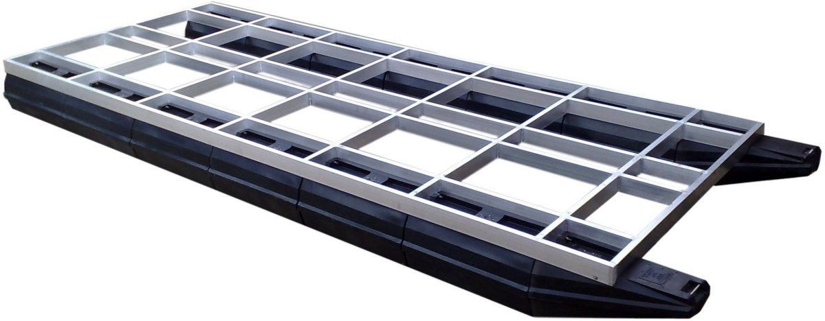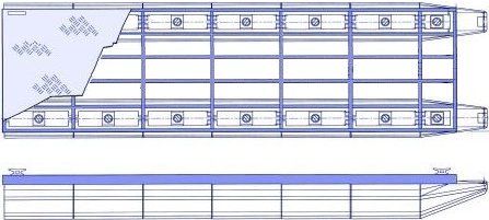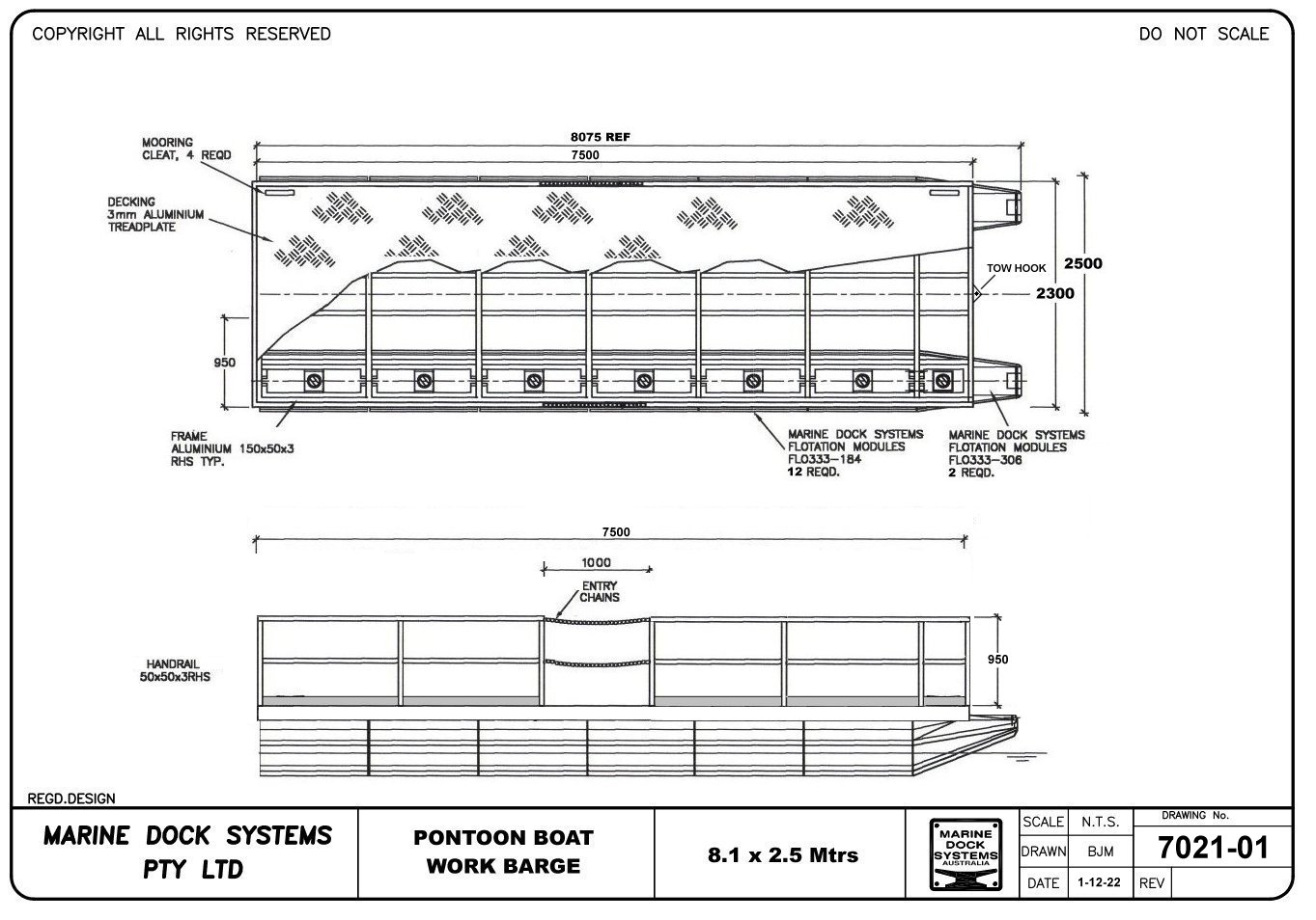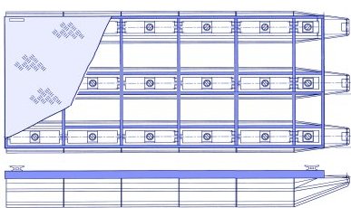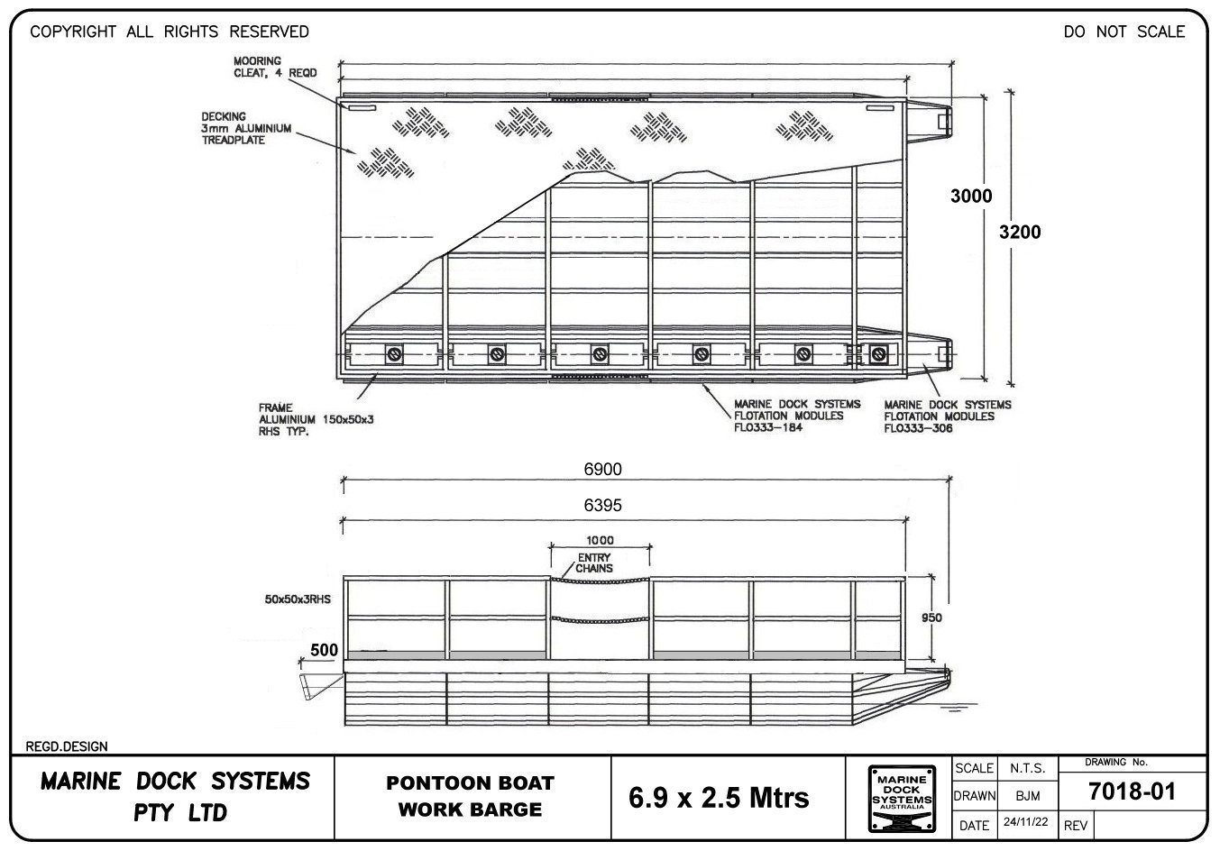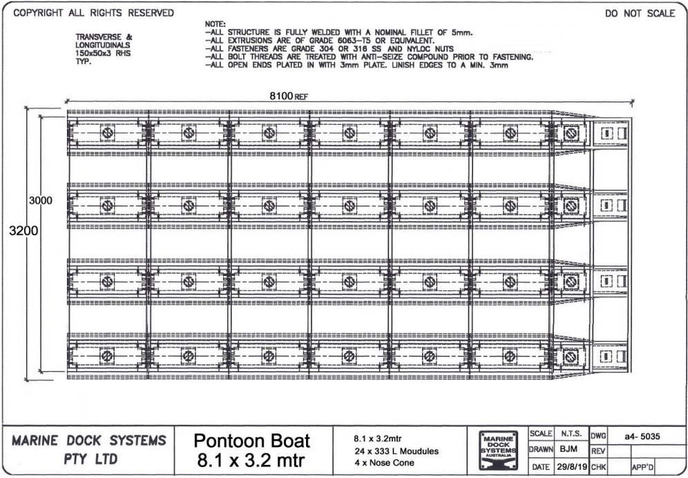 This boat is used as a standard access pontoon when not in use. Supplied with hinge lugs on the side for a six meter ramp to be attached. |