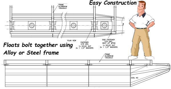 304 Stainless steel bolts have been used to attach the floats to the frame