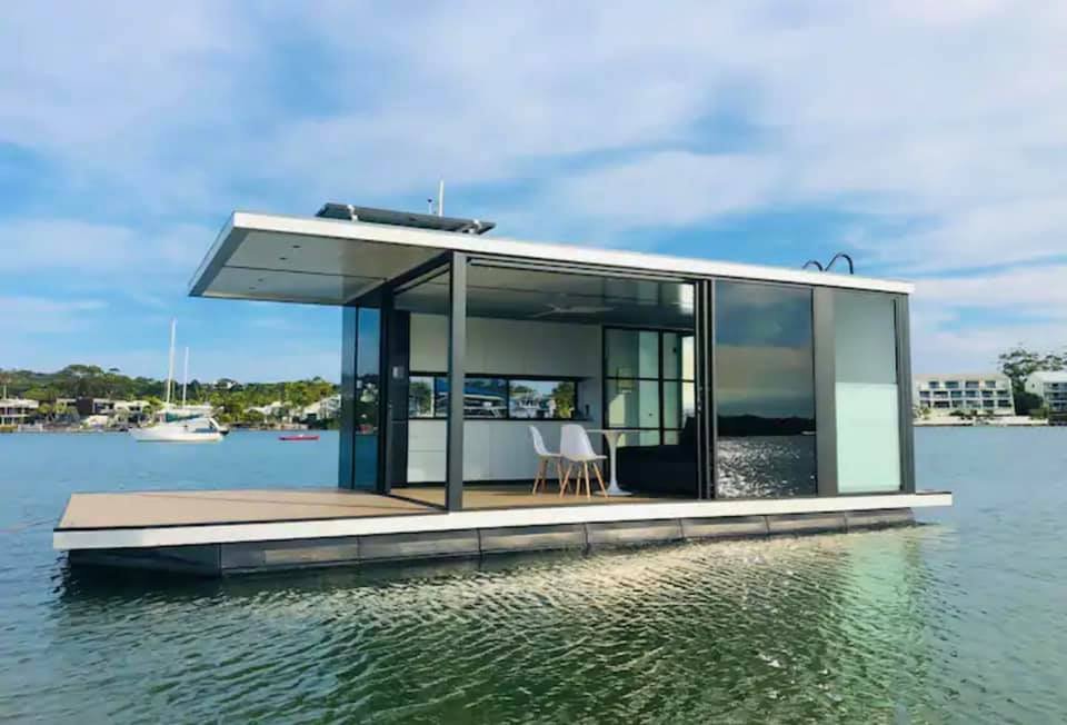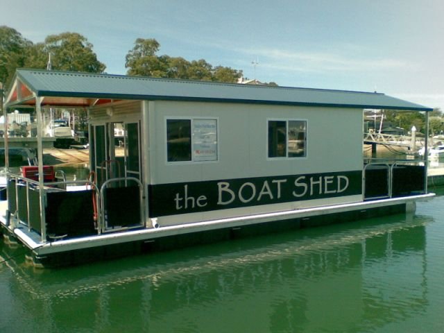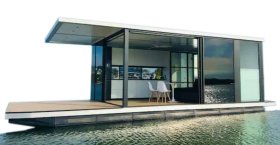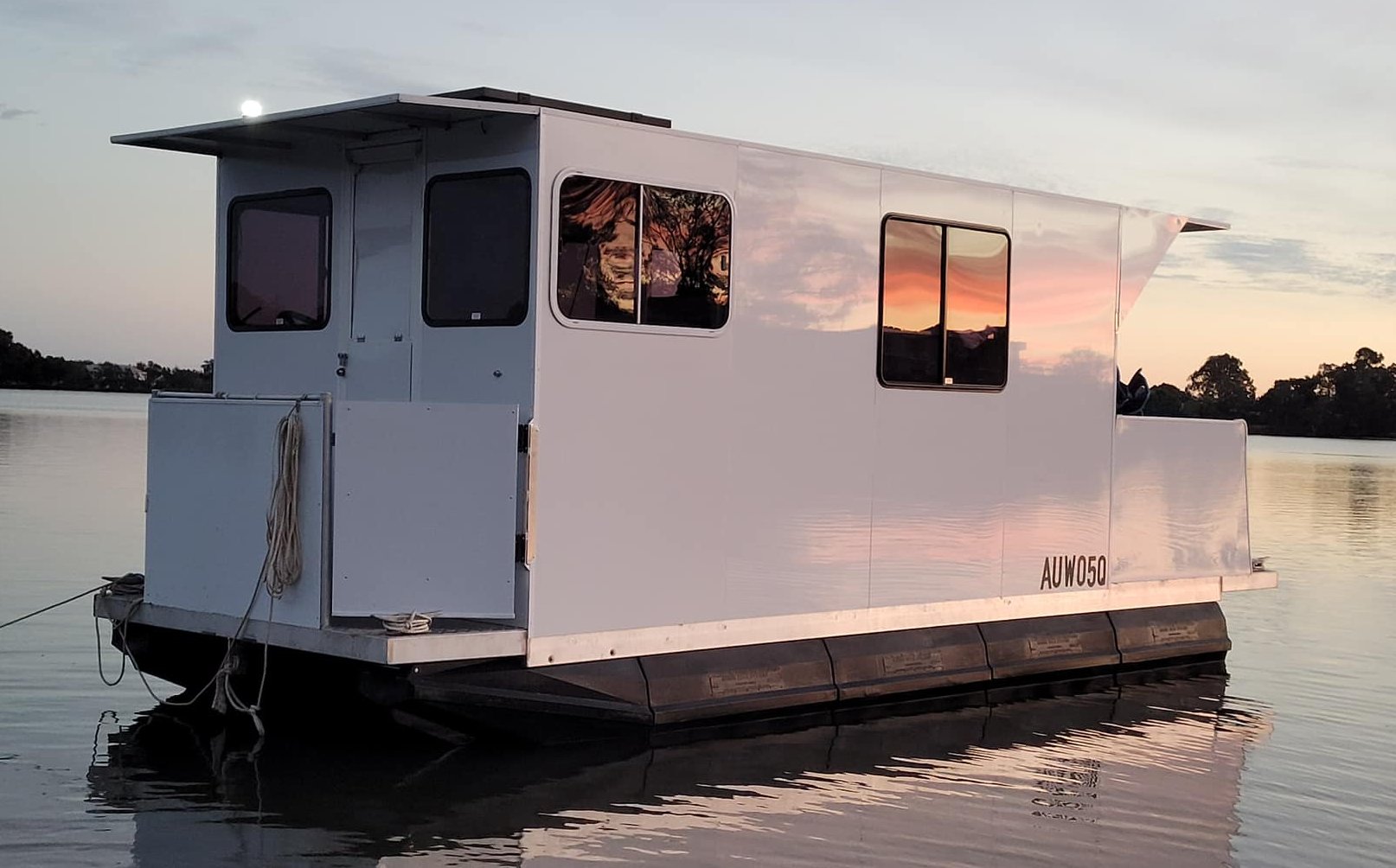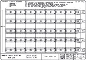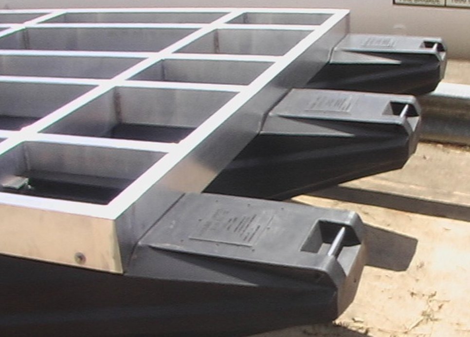 Shown here our Marine Dock Systems floats to make floating office and a great little house boat. Both of these were owner builders and used our polyethylene flotation modules.