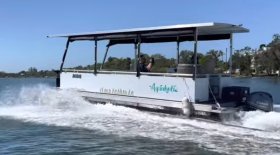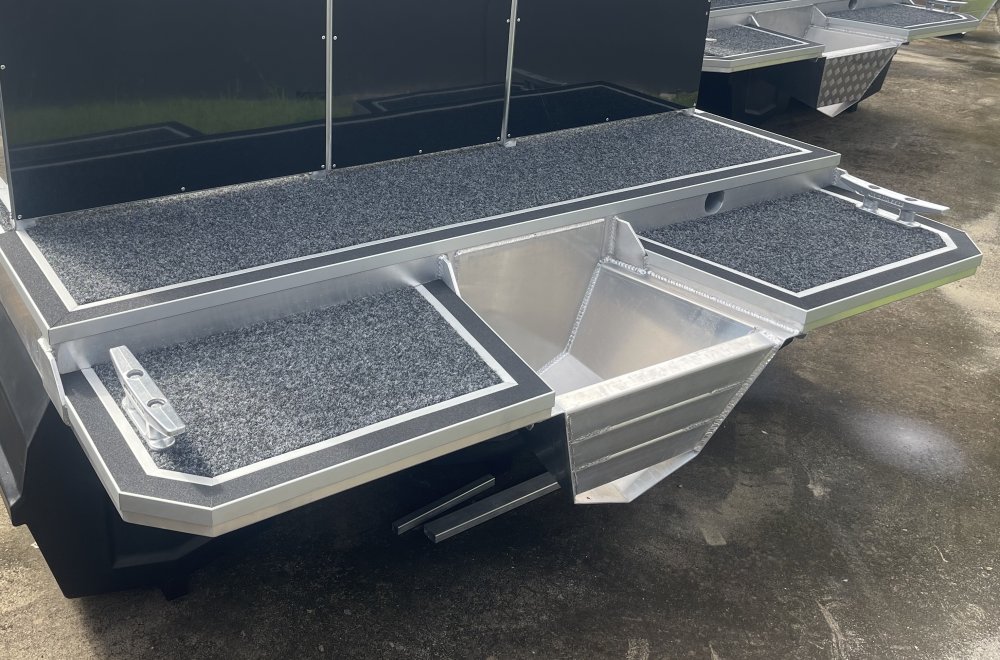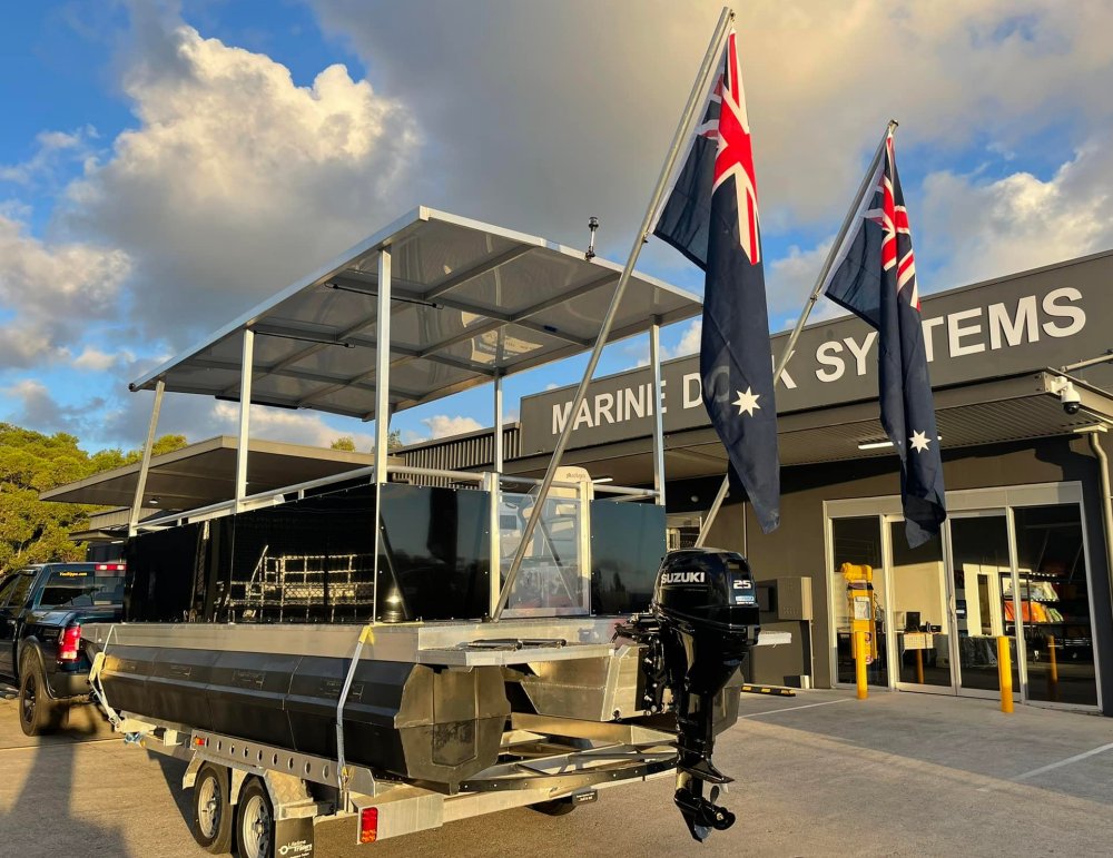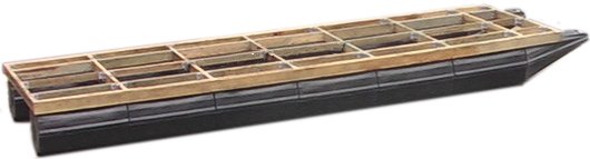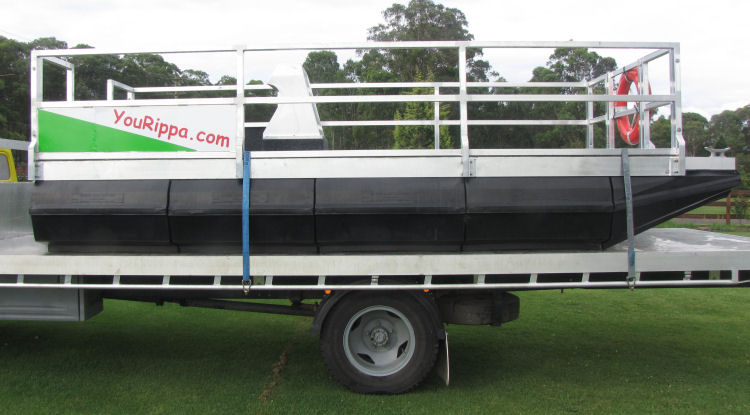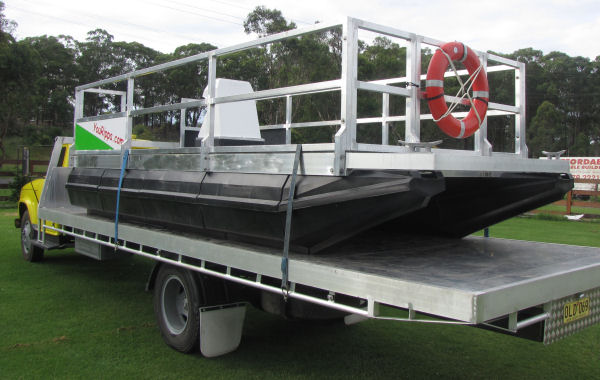 This boat has three rows of floats for extra flotation. This boat can take 2250kg. as is.