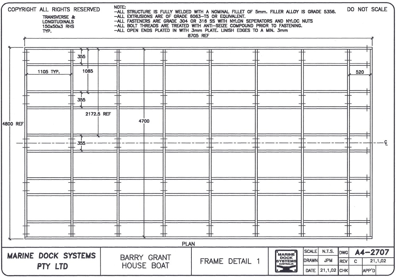 a4-0949 - Moving craft Frame detail 8.1m x 3.2m wide