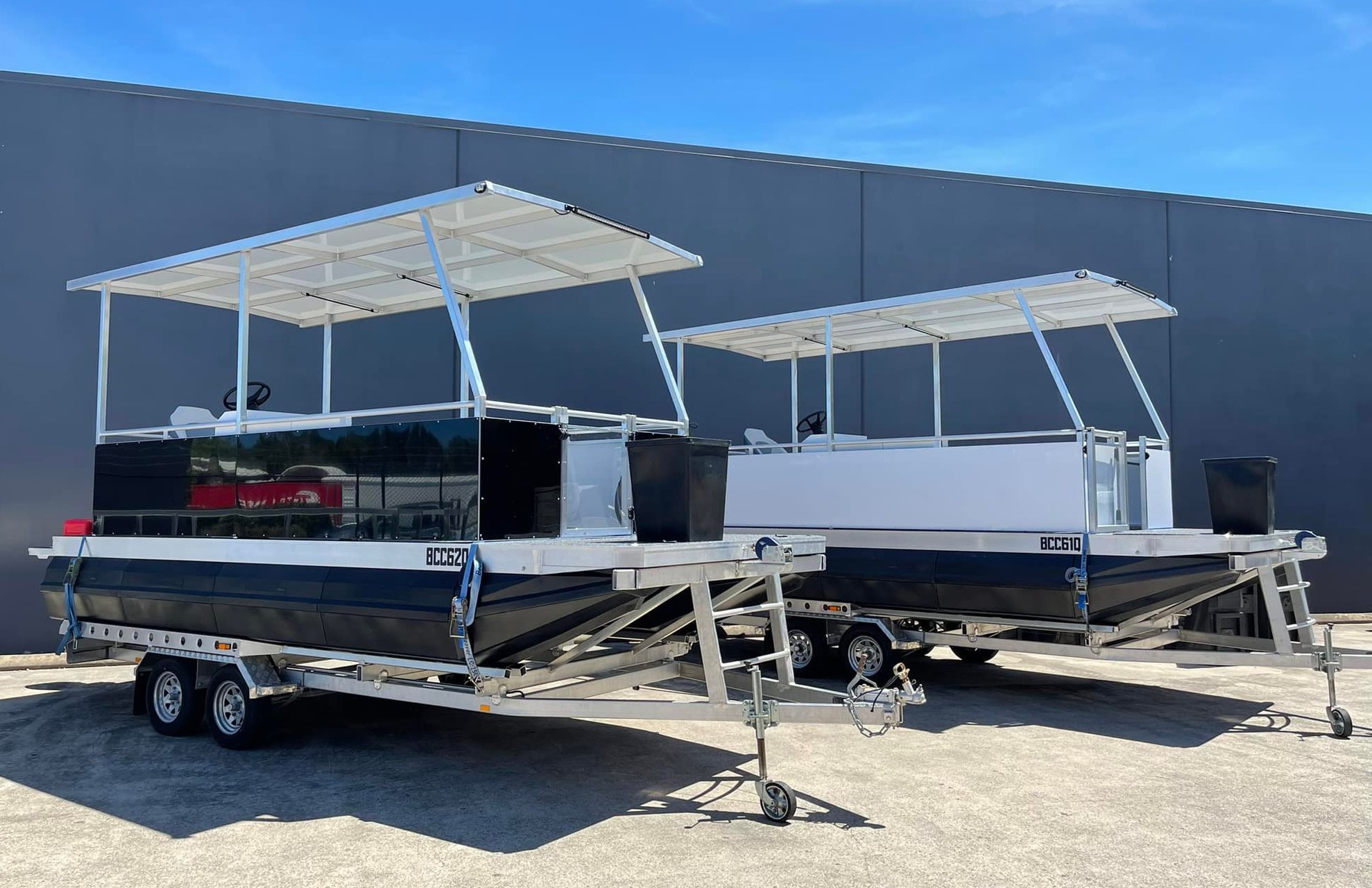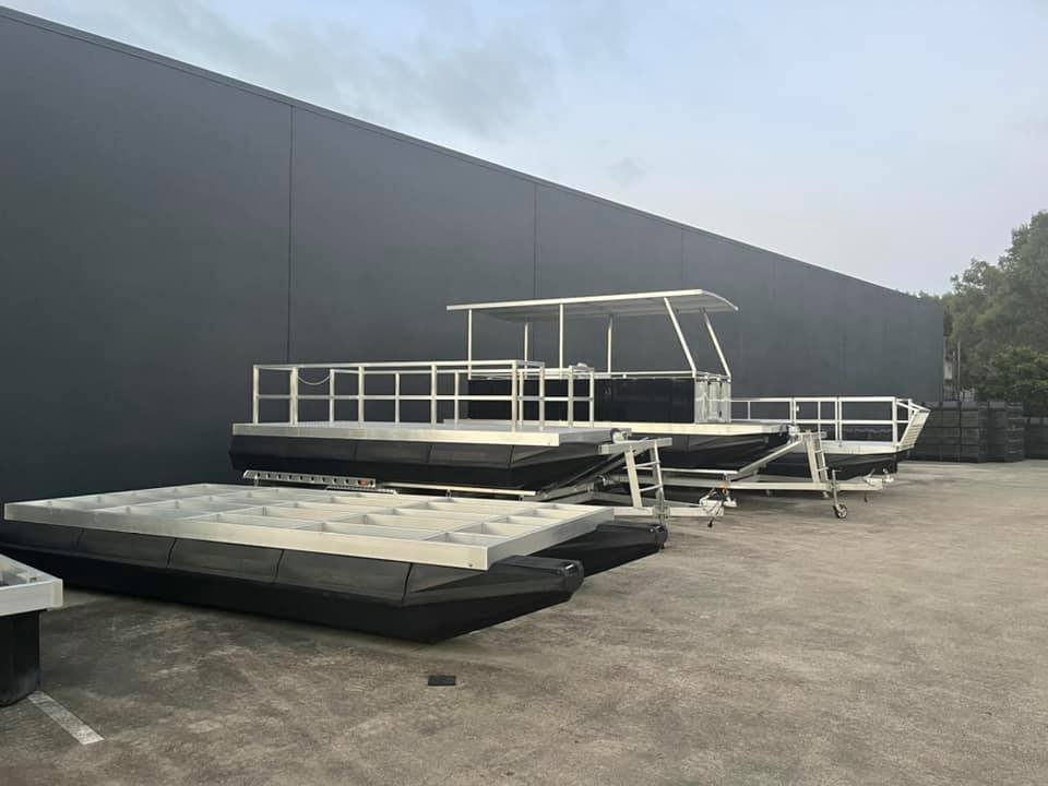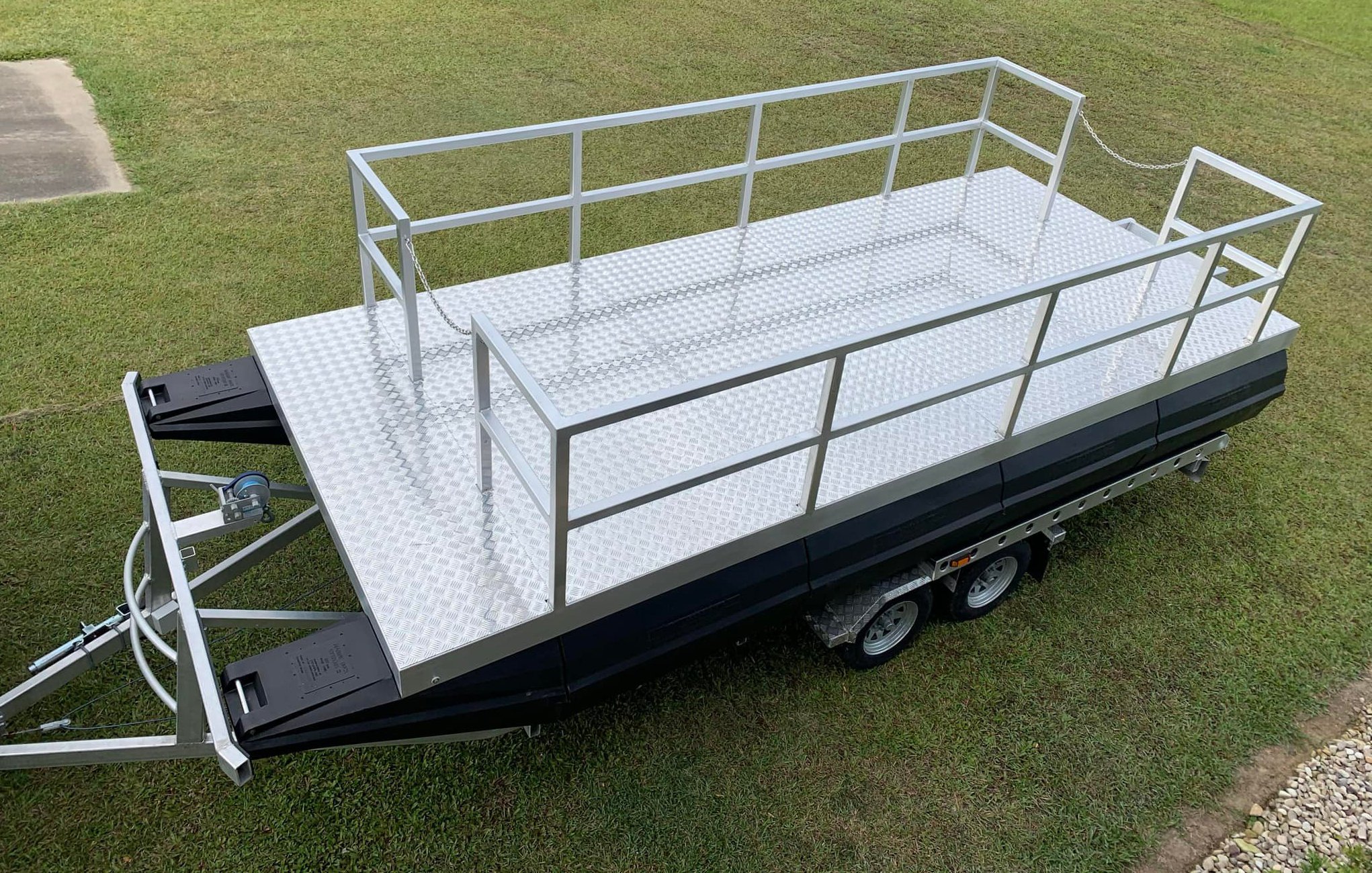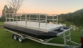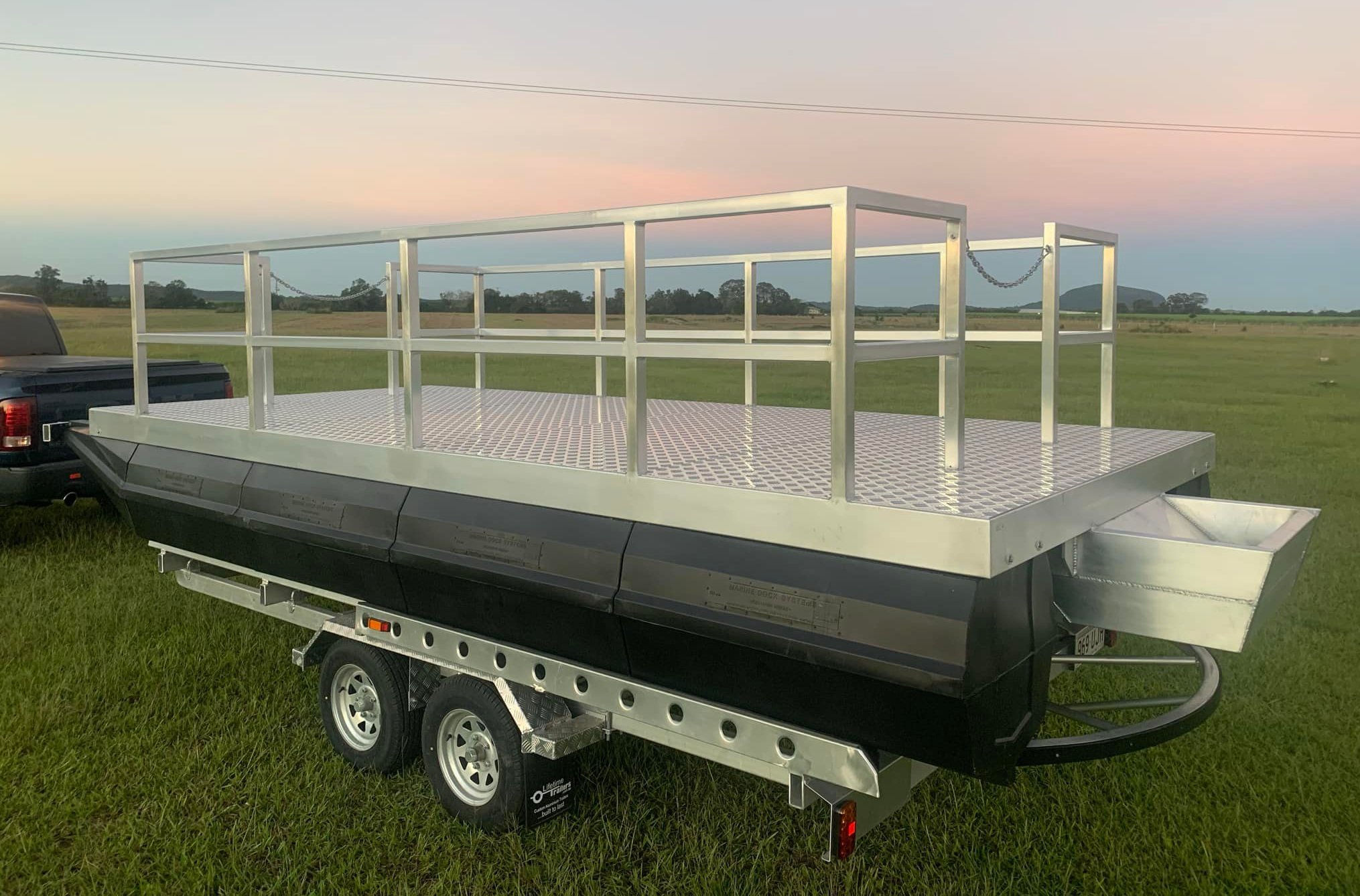 We have made boats used as BBQ Pontoon Boats, Passanger Transfer, Work Barges, Work Platforms, Docks, Moving Craft, Mooring Lifts, Transport Barges, Oyster Barge, Croc Boat, Cattle Transport, ATV Transport, Tiny house boats and Fishing!