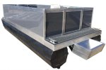Upholstered pontoon boat lounges. Our extra comfortable range includes Large straight lounge, meduim and small. Our pontoon seating is manufactured using polyethylene roto moulded bases which can handle extreme outdoor conditions, upholstered in heavy duty vynil. Lounges have lift up seats for storage, great for stowing away life jackets and more. Click Here for details