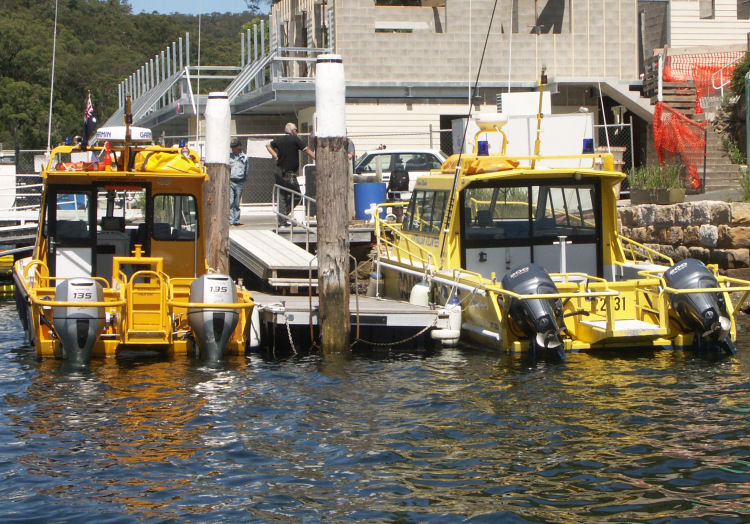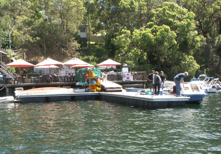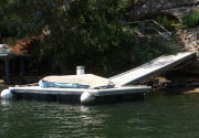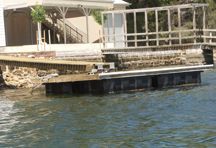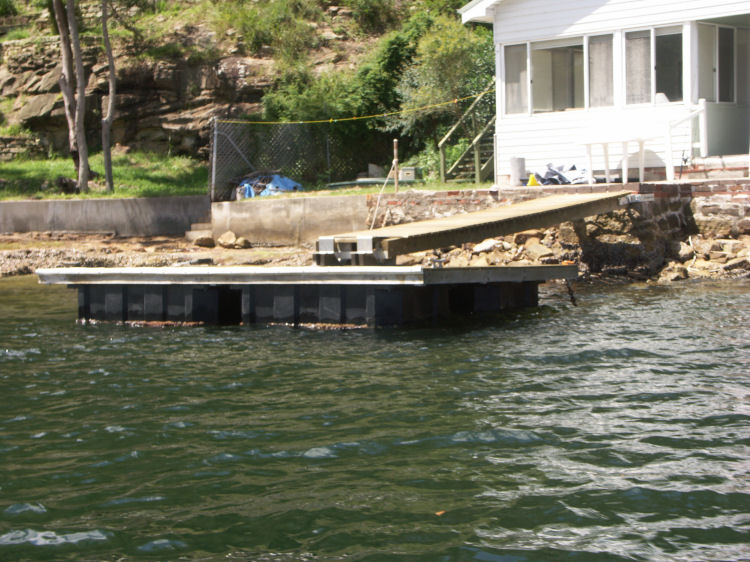 These are pictures of pontoons at Picnic Point Sydney Australia. All with Marine Dock Systems floats under them. Some recent, some built in 1980 and still going strong. There is a mix of timber framed pontoons decked with hardwood. Aluminium framed pontoons deck with hardwood timber. Aluminium frames with concrete decking. A lot of these photos also have our aluminium ramps / gangways on them. Some of these pontoons were built by someone else on our Marine Dock Systems floatation modules. Please veiw the photo's to see just what is possible with our universal pontoon system.